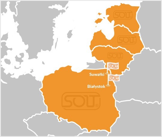 Our location office in Bialystok and warehouse in Suwalki, it's advantages in trade with the Baltic countries. This enables us to make frequent and direct contact with clients: Lithuania, Latvia and Estonia.